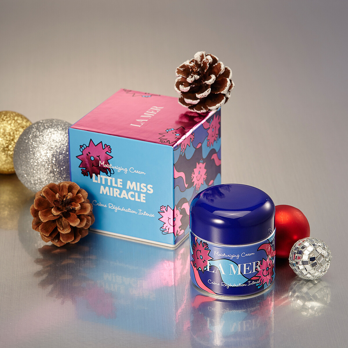 所以海洋拉娜今年聖誕與《奇先生妙小姐》作家Roger Hargreaves跨界合作就更有意義,他為海洋拉娜創作出一個全新的角色「Little Miss Miracle奇蹟小姐」,就是在呼應這個奇蹟故事。紫色的奇蹟小姐佈滿了藍色的乳霜瓶身上,童趣味十足,而且真的用了海洋拉娜經典乳霜,肌膚變好的程度真的也很像是夢想成真一樣!