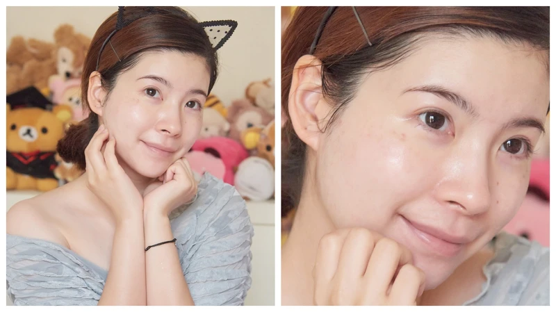 隔天起床後、還沒洗臉前,可以明顯發現肌膚很透亮,T字也沒有大出油的狀況,肌膚是呈現穩定且平衡的狀態。