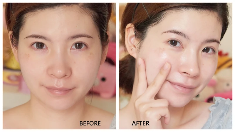 用視覺上對比使用前後差異,更可發現肌膚光澤度提高、毛孔細緻許多,連暗沉都掰掰,顴骨周圍討厭的膚色不均狀況也變不明顯,膚色更是明顯變白皙透亮。