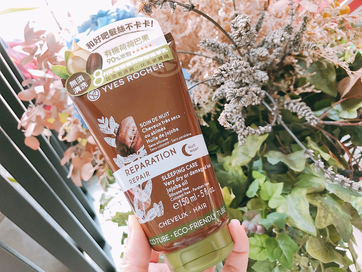 Yves Rocher和好吧滋養修護系列採用有機荷荷巴油萃取,提供髮絲滋潤和養護雙功效,特別對自然捲的毛燥髮及長期使用電棒、離子夾的受損髮強效修護。這瓶晚安護髮精華乳更是「頭髮的晚安面膜」睡前塗抹適量在吹乾後的髮絲(不需沖洗)一覺醒來後,受損髮質更強韌。