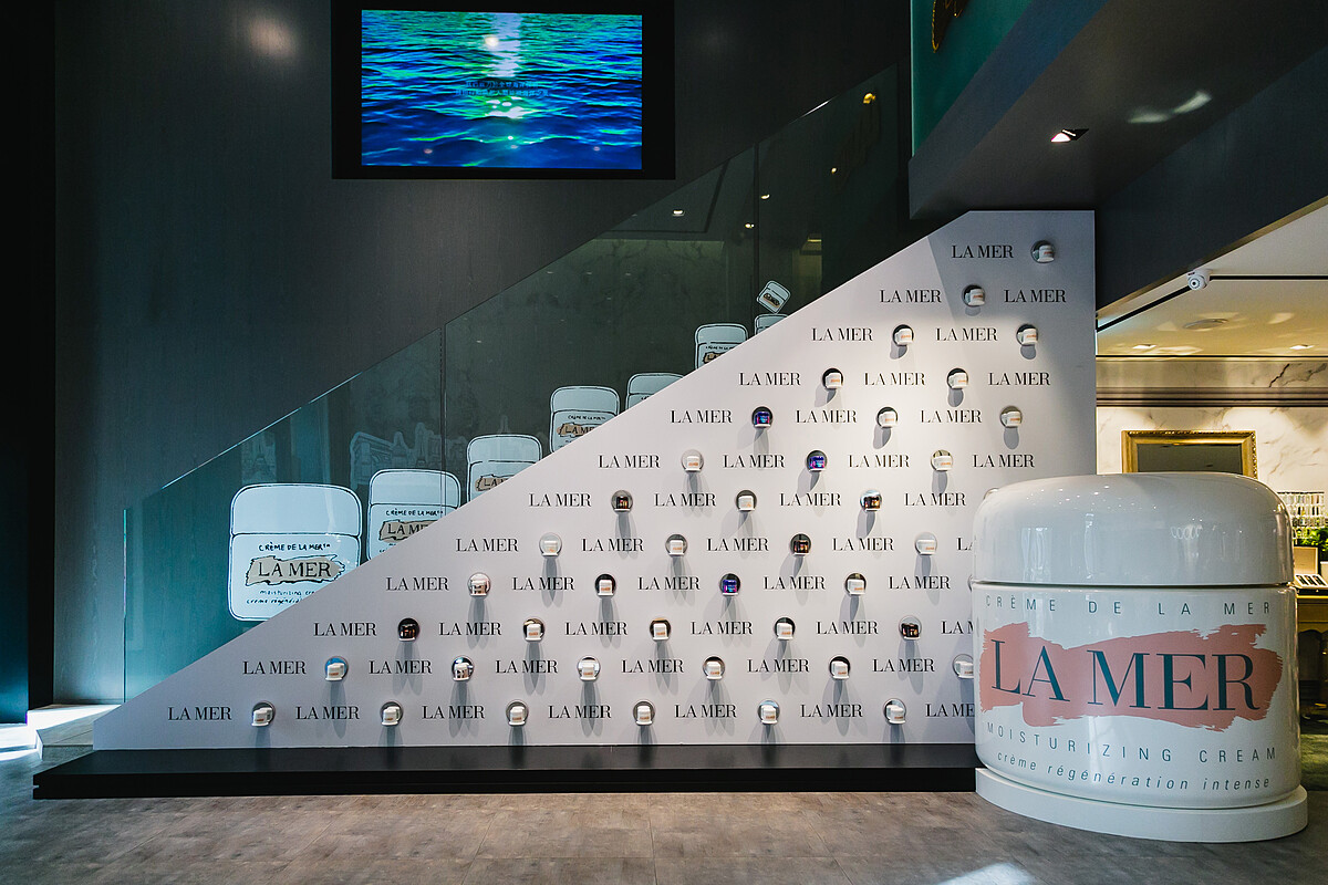 由各種海洋拉娜乳霜瓶佈置出的牆面,很有裝置藝術的FU~妳知道海洋拉娜乳霜目前有幾種質地嗎?答案是:五種!妳可以在快閃店現場親自體驗到這五種質地,秒變海洋拉娜乳霜達人。