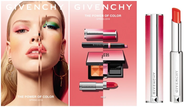 紀梵希「香吻誘惑潤色修護美唇膏」在2019年春妝時也換上粉紅色漸層的外包裝,推出新色「#5變換」,是以甜橙為主的水亮暖橘色,由於配方中的Eosin智慧變色因子能感應雙唇的pH值,因此每個人擦起來還是略有不同,更令人驚喜。