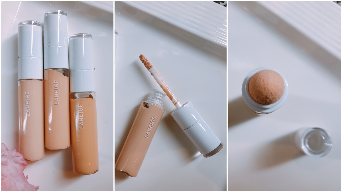 春妝中還有獨特的「雙頭兩用氣墊遮瑕」,開口處除了有遮瑕刷能沾取遮瑕液之外,還有氣墊頭設計能輕拍瑕疵處,讓遮瑕更好上手。
