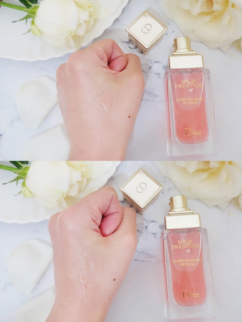 微導精露獨家的脂溶性微營養素與水溶性微營養素融合,直送肌底,吸收速度超快,對於熬夜過後吃不了妝時,完全不黏膩好吸收的質地,用微導精露搭配早晨醒膚按摩健康操之後,根本是底妝救星,一上妝就超級服貼好吃妝。再拍上迪奧精萃再生花蜜氣墊粉餅,上妝後的膚質level,直接升等歐膩般的水嫩透亮肌,整天都很仙!
