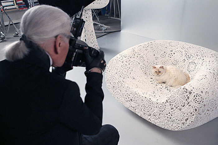 09:00 吃完早餐,我那隻人氣貓Choupette牠不喜歡獨處,因此有兩位僕人隨伺在側幫牠梳毛。牠已徹底被寵壞了,晚上還睡在我床後方。