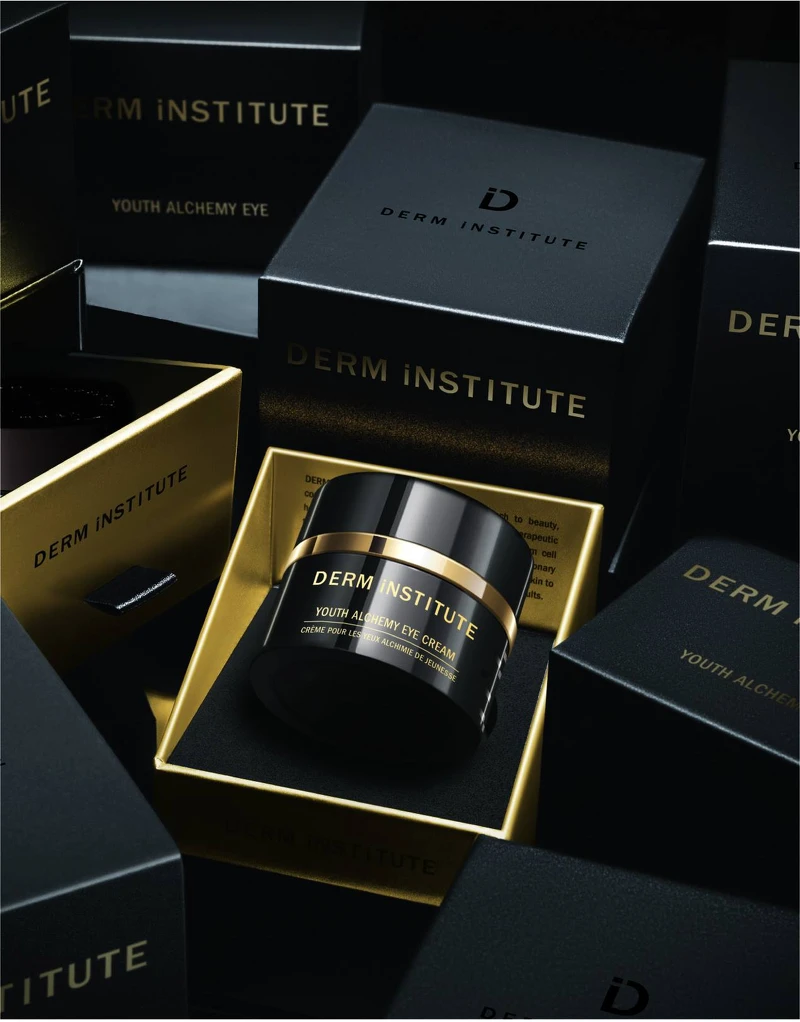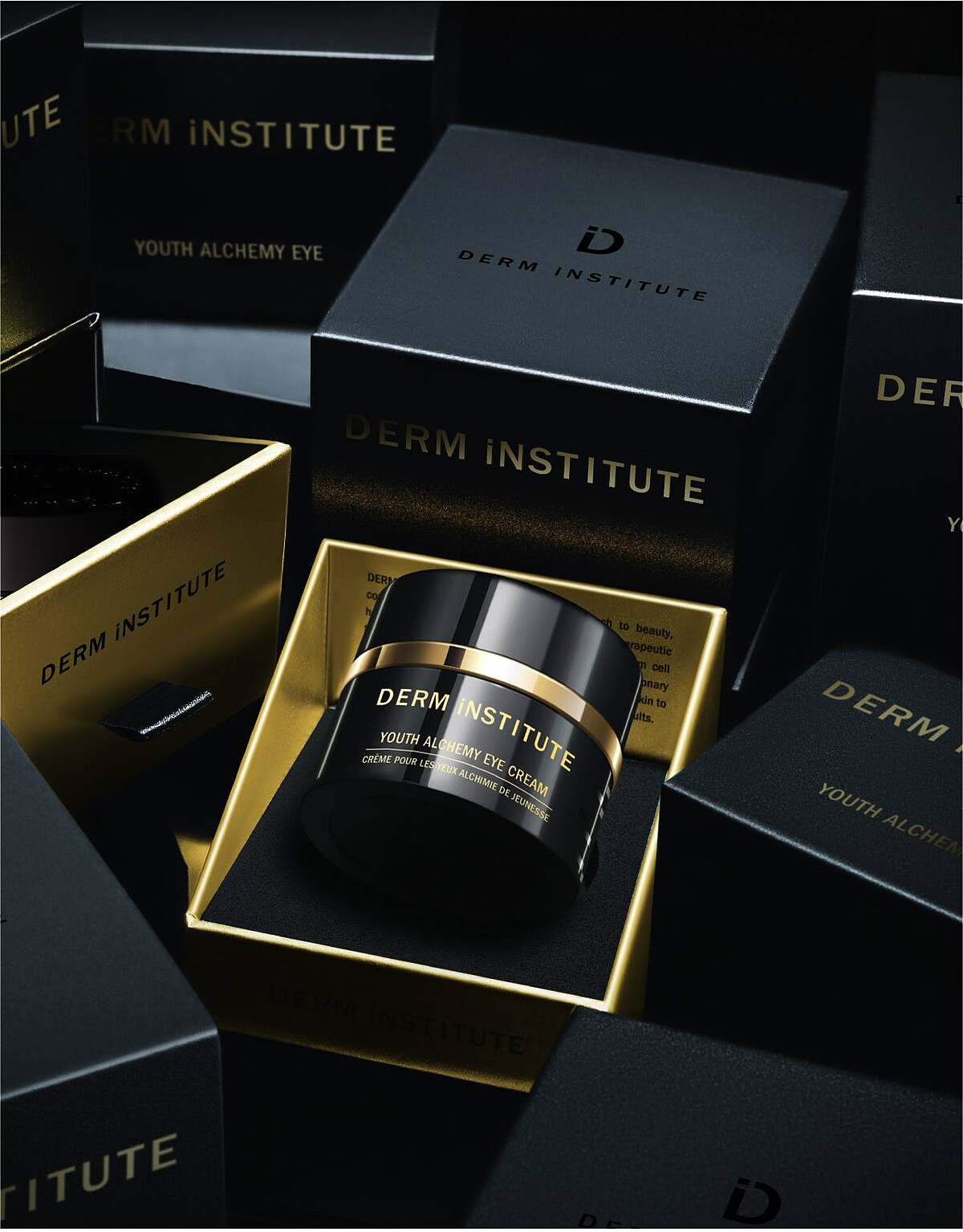 DERM iNSTITUTE青春煉金系列運用珍稀奈米鉑金、奈米金傳導科技搭配高濃度胜肽,精準擊退深層的眼周肌膚老化問題、緊實眼周輪廓,同時抵禦3C藍光造成眼周的敏感與暗沉,讓青春雙眼無懈可擊;抗氧保濕系列,則由內而外調整肌膚鎖水、造水能力,維持膚況穩定、打造完美的肌膚保濕蓄水池,青春無齡的極致秘密都在DERM iNSTITUTE得英特。