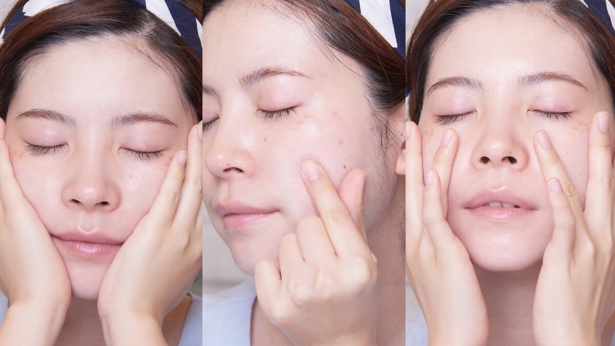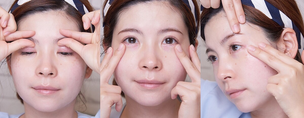 Step1:輕捏眉間 → step2:眼下滑行按壓 → step3:上下反方向按摩