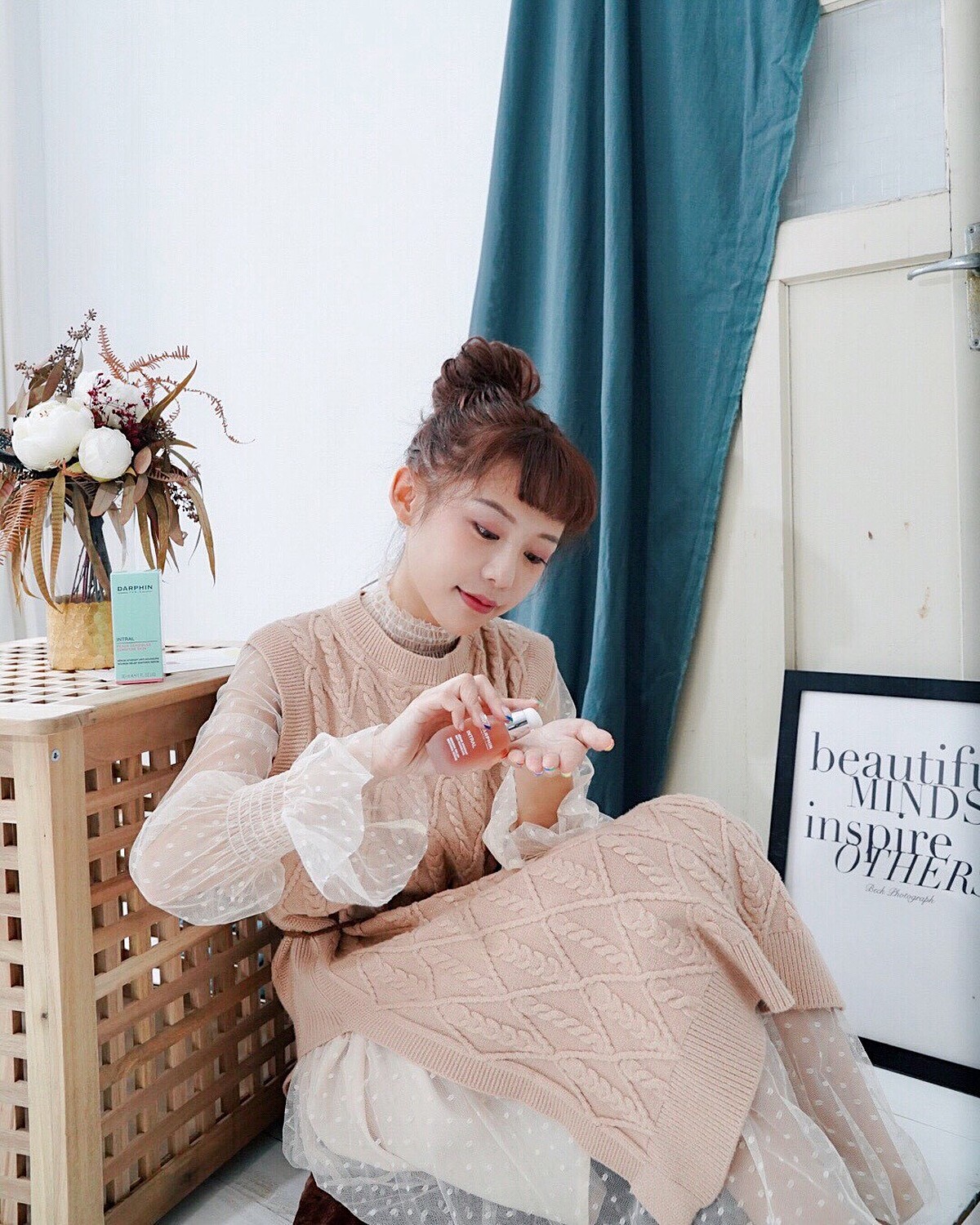 紀卜心笑說,自己愛用到還特別爬部落格研究按摩手法,發現將精華液擠在手心,利用掌心溫度按摩全臉,還能順便拉提她最在意的法令紋,「而且邊聞精油花香邊按摩吸收,可以幻想自己是貴婦!」M編不得不說,DARPHIN療癒小粉紅「全效舒緩精華液」的植萃保養力真的不是浪得虛名,看看紀卜心白裡透紅綻放粉嫩光采的肌膚,什麼壓力型敏弱、換季敏感肌…從此嚇不倒我們啦!