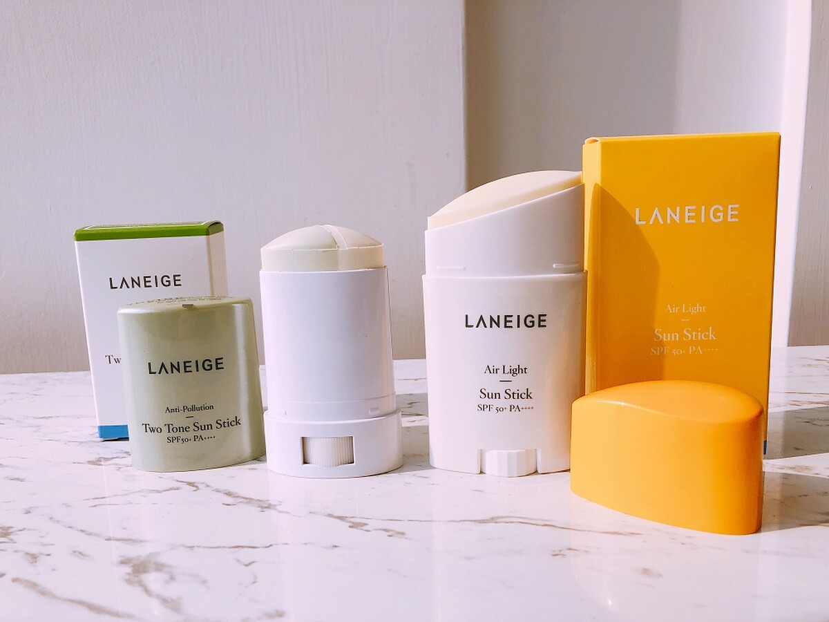 黃色蓋子的「超輕盈保濕防曬棒」強調如空氣般的超輕盈質地,加上天然植萃的木醣醇富含保濕力,還有維他命玫瑰果油提供肌膚活力能量,增強對紫外線的抵抗力,以及油脂平衡粉末創造清爽質地。斜角設計更能貼合臉部,塗抹起來很順手。