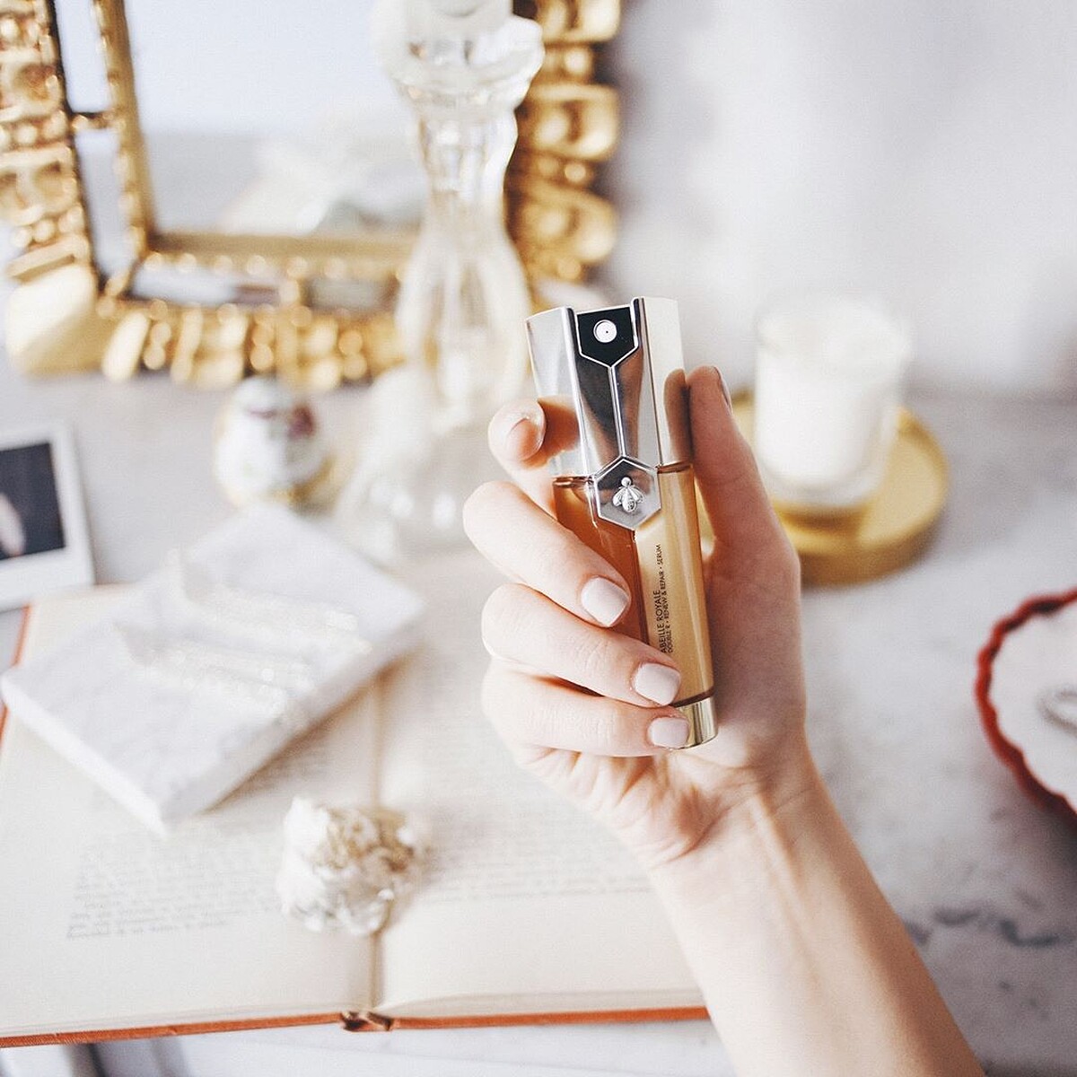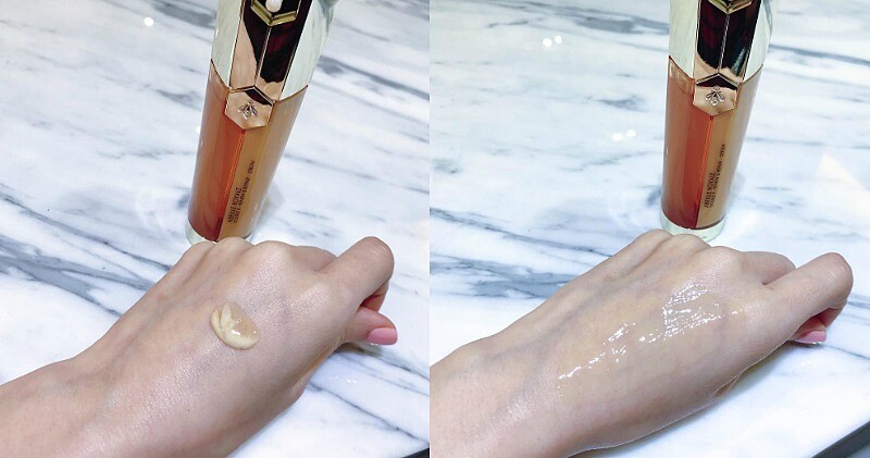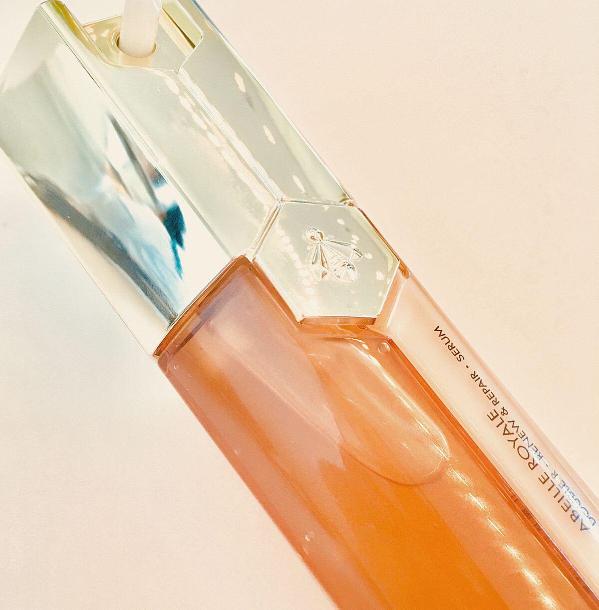 而右邊乳白色的緊實修護精華,透過烏埃尚島黑蜂的蜂王乳精萃,讓肌底由內而外層層修護,賦予Q彈的膚觸!每天M編都好期待輕輕一按「皇家蜂王乳雙導精華」壓頭,煥膚與緊實精華雙壓頭一次按壓出超美的雙質地,一抹就吸收,膚質光滑柔嫩,那種看得見且超有fu的療癒感,不親自來感受此生遺憾!!!