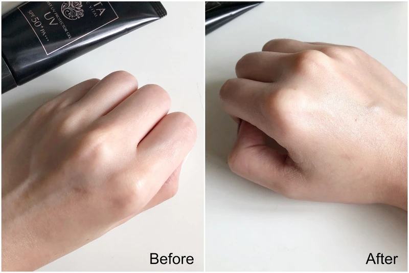 不含香料的黑植萃水潤防曬精華乳有著SPF 50+、PA+++的高係數防曬,水感質地不乾澀,延展性也高,不用擔心一般高係數防曬品會出現的厚重感,清爽不黏膩,還可以做為早晨的全效水凝霜使用。加上吸收速度快,也不改變原來膚色,擦上後完全沒有負擔感,作為保濕妝前打底恰恰好,肌膚更添透亮感!
