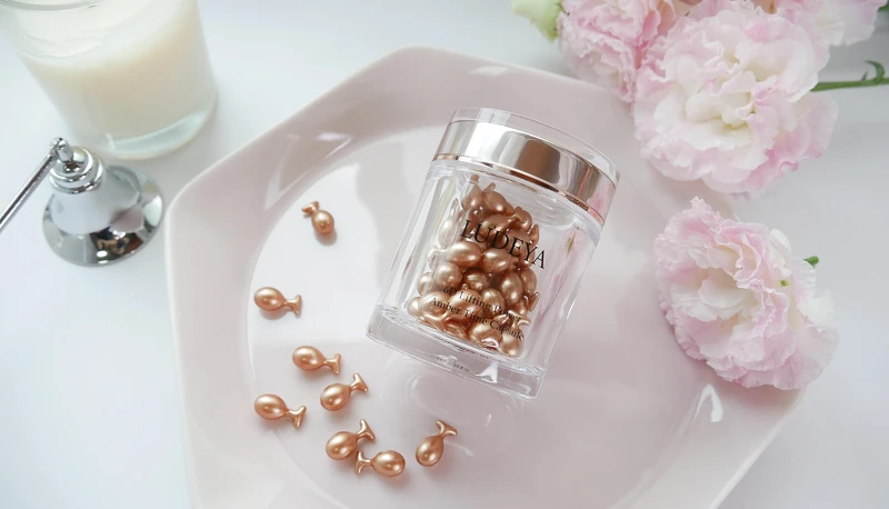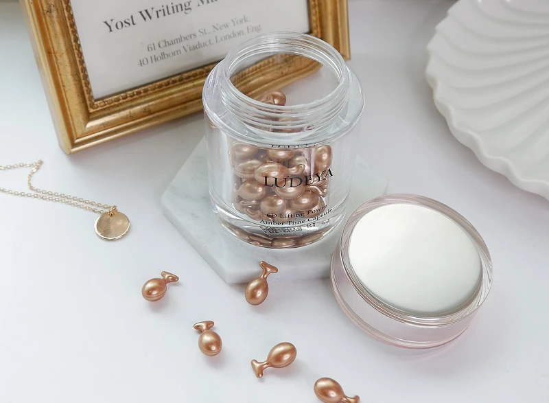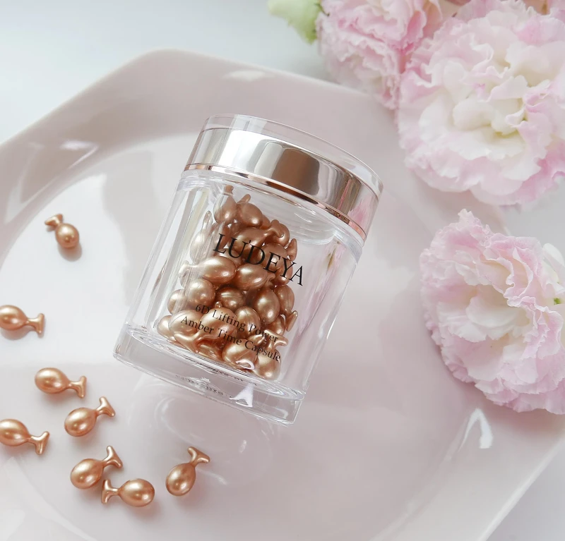 拜LUDEYA獨家保養方程式----萬年琥珀精萃x奈米級微臻技術所賜,保養品中多達1億7千萬根微臻能將琥珀抗老精華直送肌膚最深處,層層為美麗打底;現在單顆膠囊形態,包裹這極致滋養,超濃縮的新鮮成分,一次一顆讓保養更簡單、更聰明。賈靜雯透露:務必全臉擦完後帶到脖子,如此不遺漏細節的保養肌膚,才能讓自己的真實年紀永遠成謎~~~