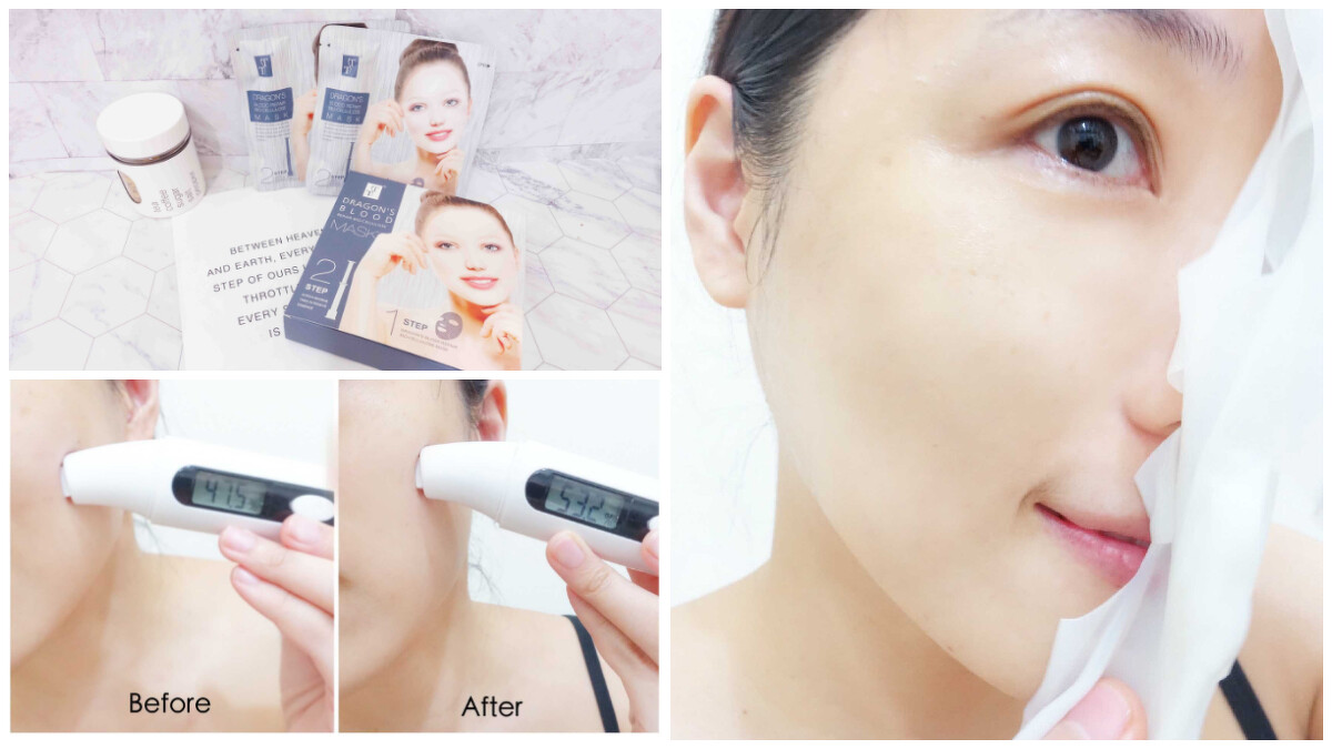 龍血素微導修護面膜,龍血素利用生物纖維完美導入系統,讓精華成分深入肌底,達到撫紋與修護緊緻的功效,非洲生命素萃取為肌膚建立保濕循環系統,高度補水、鎖水讓肌膚從底層回彈、對抗老化。不同功效精準保養,對於像是M編已經進入輕熟齡的肌膚,一定要定期使用抗老功效的面膜為肌膚進補!讓肌膚隨時維持在緊緻Q彈的狀態!