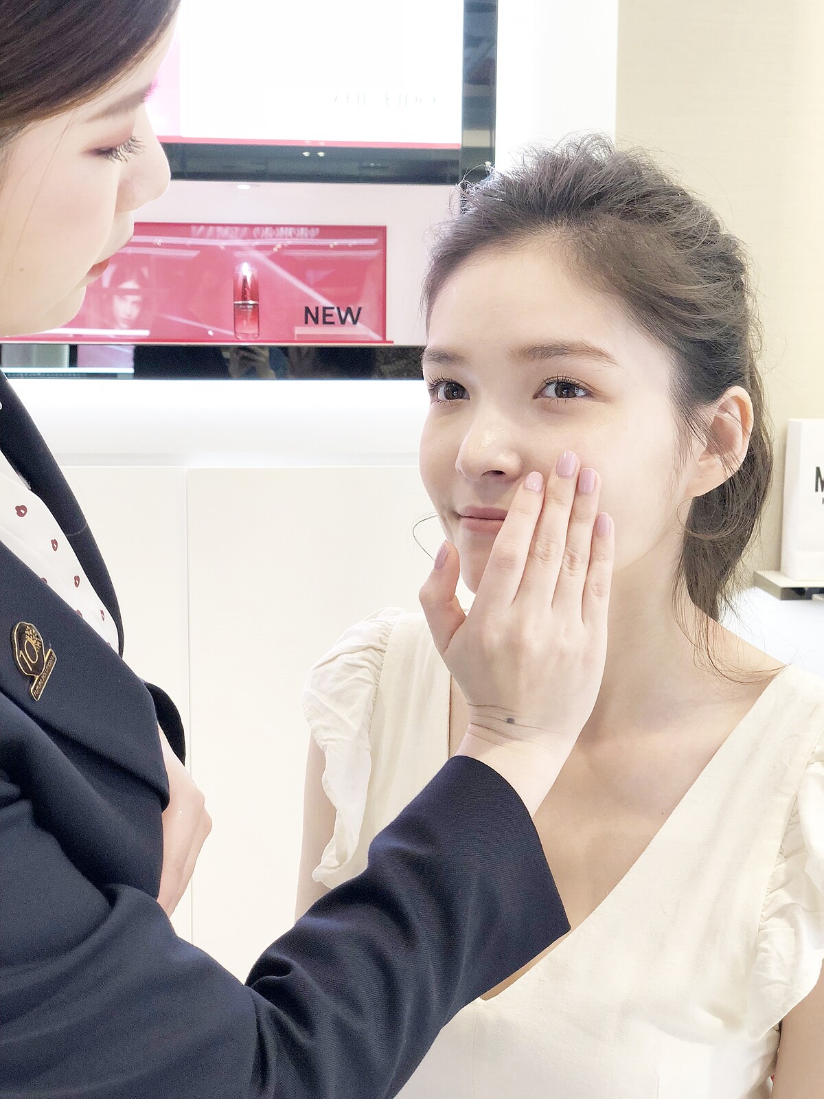 韓笙笙這次特別來到資生堂國際櫃,請櫃姐示範每天必做的活氧按摩,輕鬆回歸亮顏膚況!