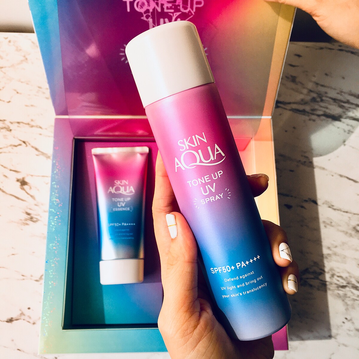 曼秀雷敦水潤肌柔光透亮防曬飾底系列,不僅擁有SPF50+/PA++++最高防曬係數,獨特「透明藍調」與「血色粉紅」交織出夢幻「薰衣草紫」色調,能校正泛黃黯沉膚色,塗抹防曬就能同時美肌!實現女孩憧憬的白皙,讓肌膚不只是死白,而是帶有透亮感的透明白肌。日本獨家革命性「細微光感微粒」添加,能360度反射光線,自然打亮肌膚,閃耀淡淡光澤感,一秒仙氣逼人。新品「噴霧-薰衣草紫」讓女孩不再擔心夏日的背心、短褲清涼穿搭,會露出黯沉不均的膚色,背部、後頸、腳趾、膝蓋等都能輕鬆一噴,秒速完成最強UV防護,完全是美肌救星無誤。