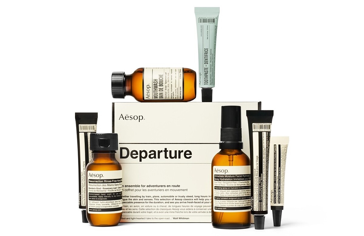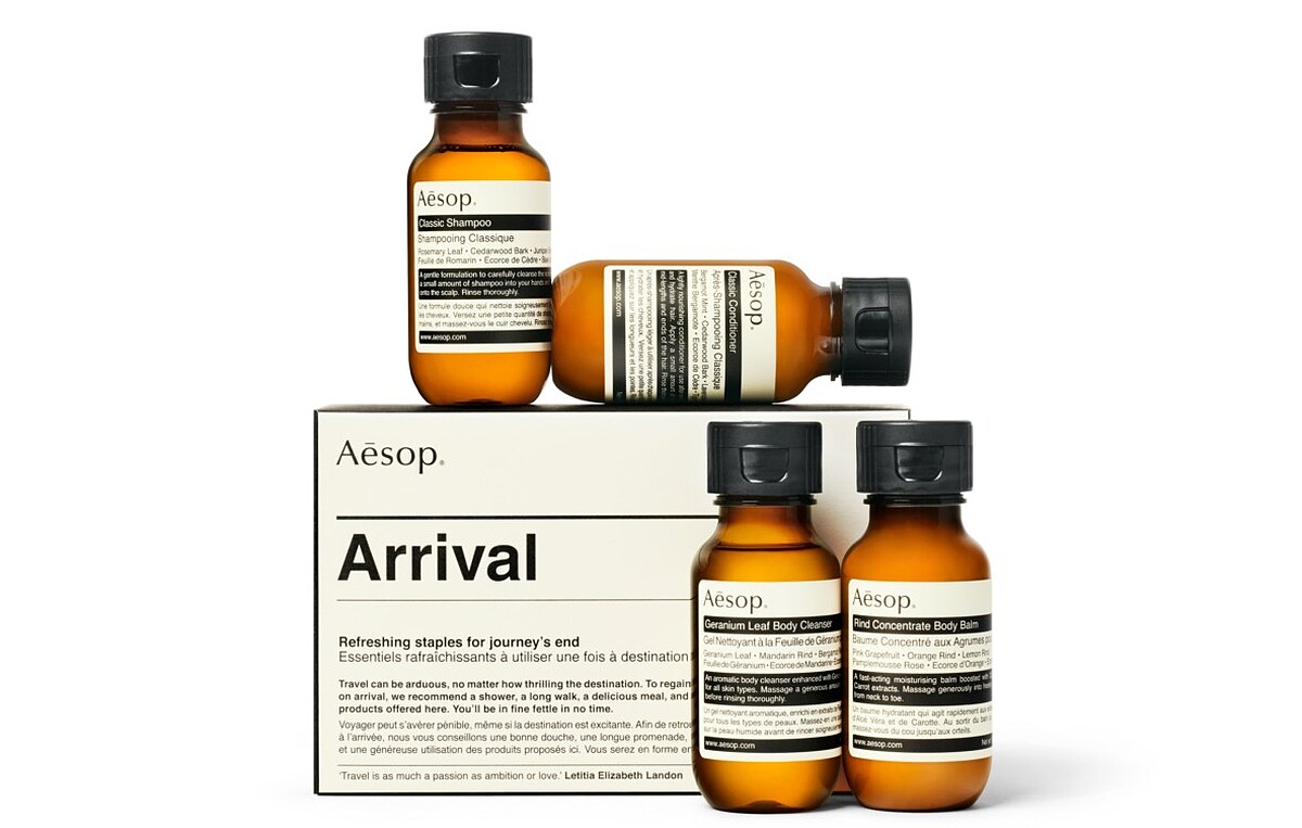 旅行組合內容均符合國際登機之攜帶液體容量規範,在Aesop所有概念店、百貨專櫃和Aesop網上商店販售。
