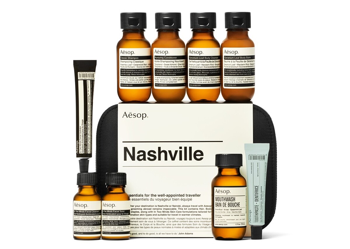 以及,Aesop同時也推出新的城市系列旅行組─納許維爾城市旅行組,以充滿現代感的城市納許維爾命名,精選了多款最受青睞的Aesop產品,包括護髮、身體保養和口腔調理系列,還有二重奏護膚系列的基本產品!其包裝採用了設計優雅的黑色超細纖維盥洗包,無論是外出度週末還是去國外旅行,這款組合都能讓妳享受完美的個人護理。納許維爾城市旅行組適合在前往溫暖地區時使用,針對中性至混合性肌膚設計。