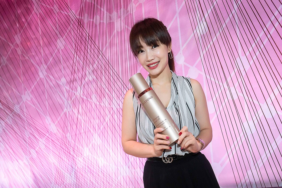 蕭彤雯:「因為工作需要,我一直都是克蘭詩V型精華的愛用者,好的臉型不僅美觀,看起來也比較精神,狀態好也是一種專業展現。這瓶精華的氣味很放鬆,單擦就讓我覺得效果很好,搭配按摩更是上鏡前的急救法寶。新一代精華我覺得緊實拉提效果更加明顯了,最棒的是質地一樣很好吸收,不黏膩所以也不會影響後續上妝效果,我很滿意。」