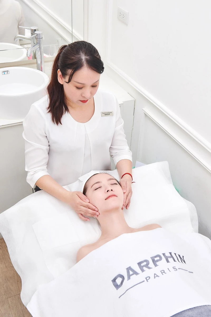 YANG YANG,DARPHIN運用法式芳療保養手技,推薦她體驗「緊緻療程」,以無齡肌必備的「完美無齡胜肽系列」與頂級抗老美容神油「百妍極緻芳香精露」為主,緊實臉蛋,擊退嘴邊肉,迅速拉出小V,肌齡年輕10歲回到少女肌,不被工作壓力搞砸 !