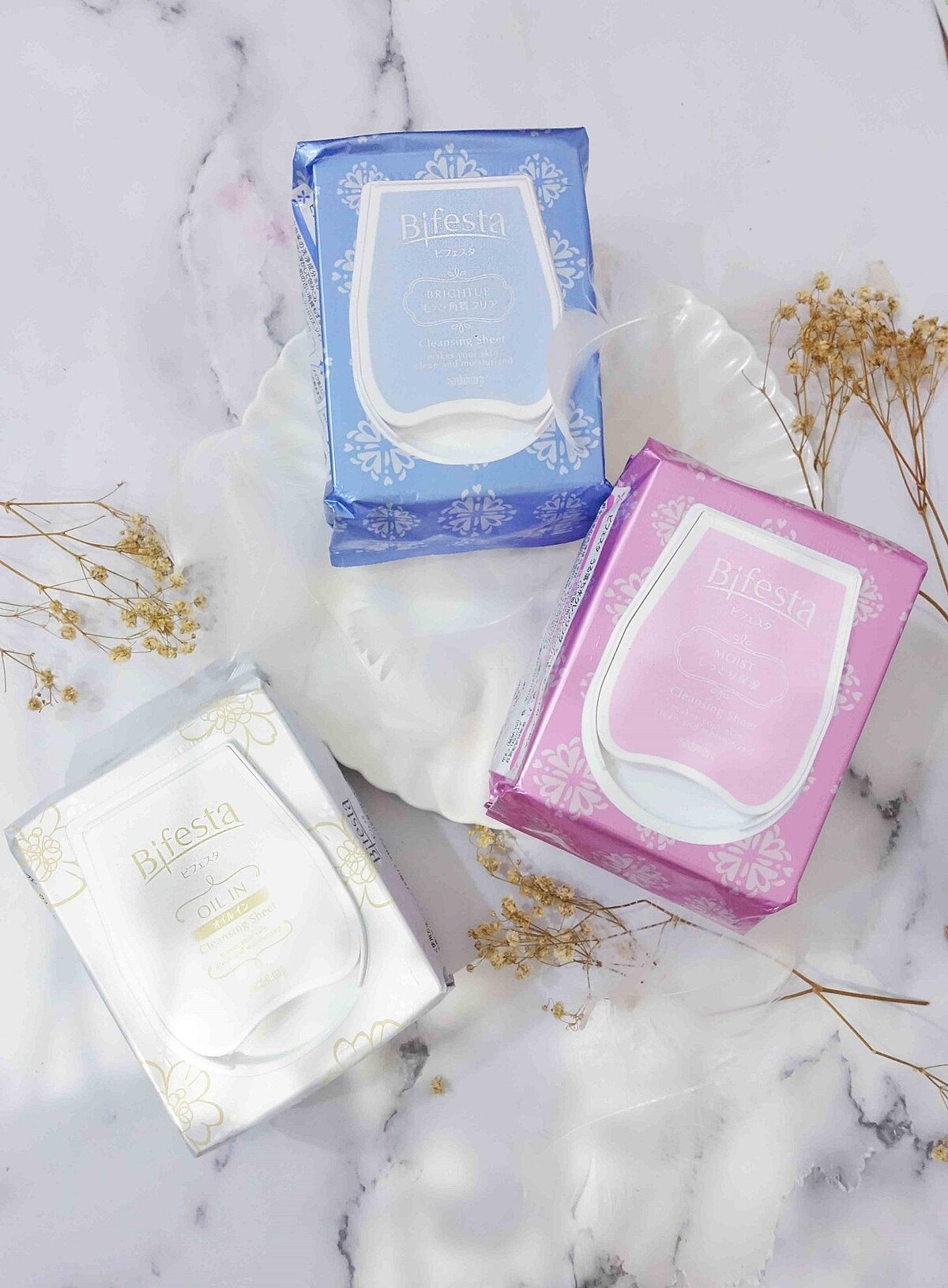 Bifesta碧菲絲特即淨卸妝棉 共三款,「藍色款:碧菲絲特毛孔即淨卸妝棉」、「粉紅款:碧菲絲特水嫩即淨卸妝棉」、「金色款:碧菲絲特濃妝即淨卸妝棉」。三款皆添加「持久型玻尿酸」,卸妝同時肌膚超水,就像擦上一層保濕化妝水!完全不會乾澀緊繃,無添加人工香料、無合成色素、敏感肌也能安心使用!那些曾經怕刺激敏感,而對卸妝棉怯步的人,都應該給碧菲絲特一個機會啊!用過此生很難接受別的卸妝棉了!
