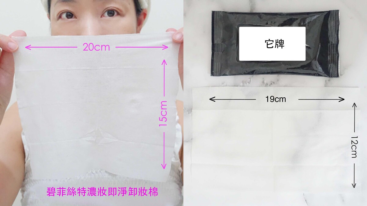 大尺寸v.s小尺寸比一比,比M編臉還大的20cmx15cm超大尺寸,舒適柔軟的棉柔質感搭配低摩擦配方,卸妝棉接觸肌膚時,膚觸超柔軟舒服,重複擦拭不刺激,肌膚被溫柔對待的感覺真好。大尺寸設計,一張就卸乾淨,桌上不再一片狼藉!