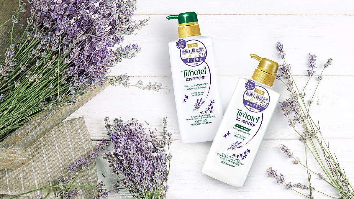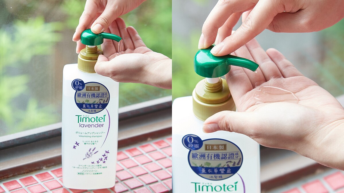 Timotei蒂沐蝶推出全新「薰衣草豐盈植萃系列」,含歐洲有機認證成分*,在日本製造,洗髮精還無添加矽靈、合成著色劑、Parabens防腐劑,用起來感覺安心又放心,還能為秀髮注入空氣感,幫助達到豐盈健康。