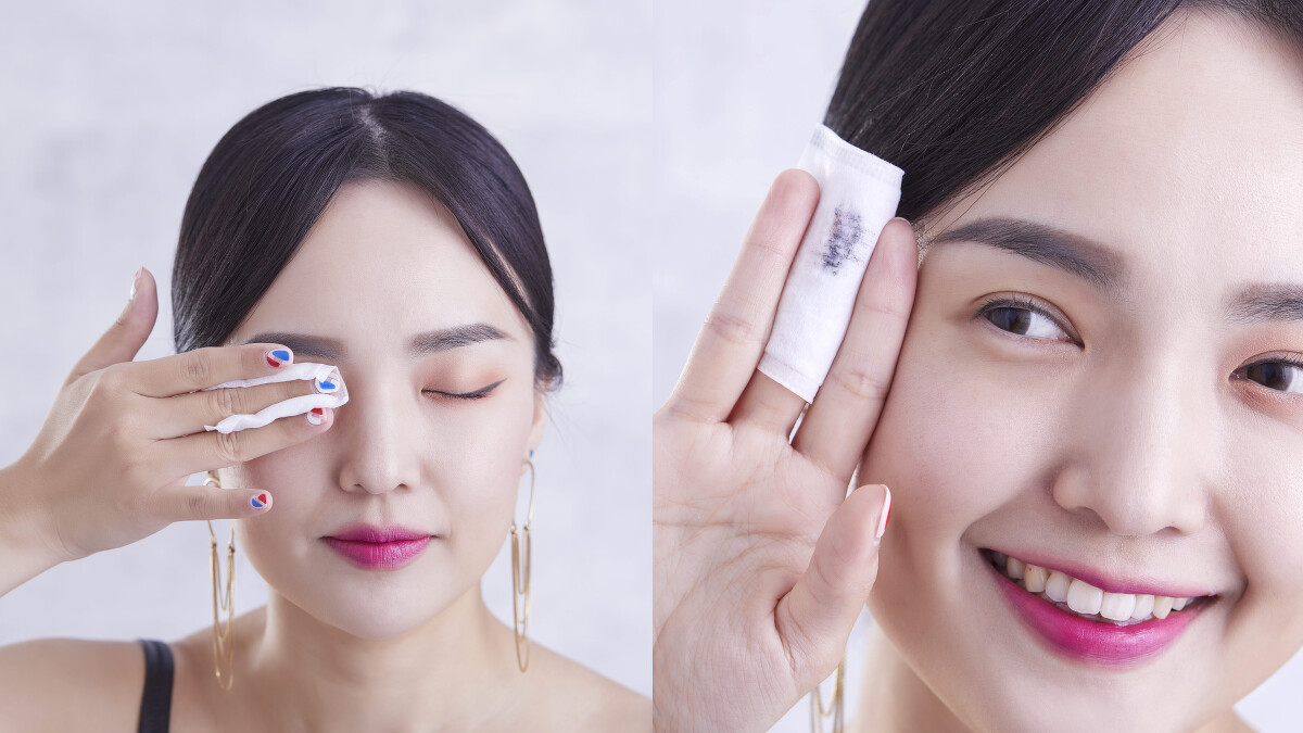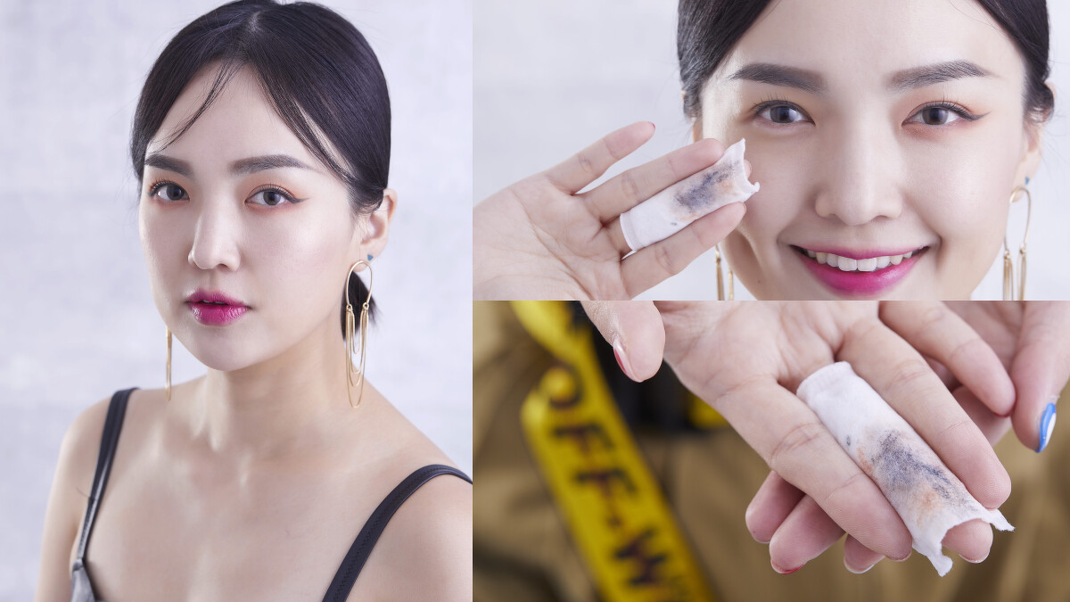 Wawa表示為了讓模特兒上鏡好看,眼影跟唇彩絕對是平常人的兩倍顯眼,所以今天她特別畫了一個超級大濃妝要來挑戰,她想都不想直接就拿起卸妝水,濕敷在眼睛上,短短5秒眼影跟眼線立刻KO!