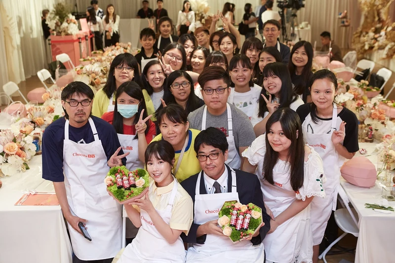 一出場就充滿清新氣氛的李佳穎,親切的跟在場所有粉絲打招呼,原本就喜歡手作的她,看到很多特別的花材,讓她現場好奇心大開,不斷的詢問老師花卉種類,非常用心的裝飾她創意滿滿的Chocola BB蜂王飲禮盒。