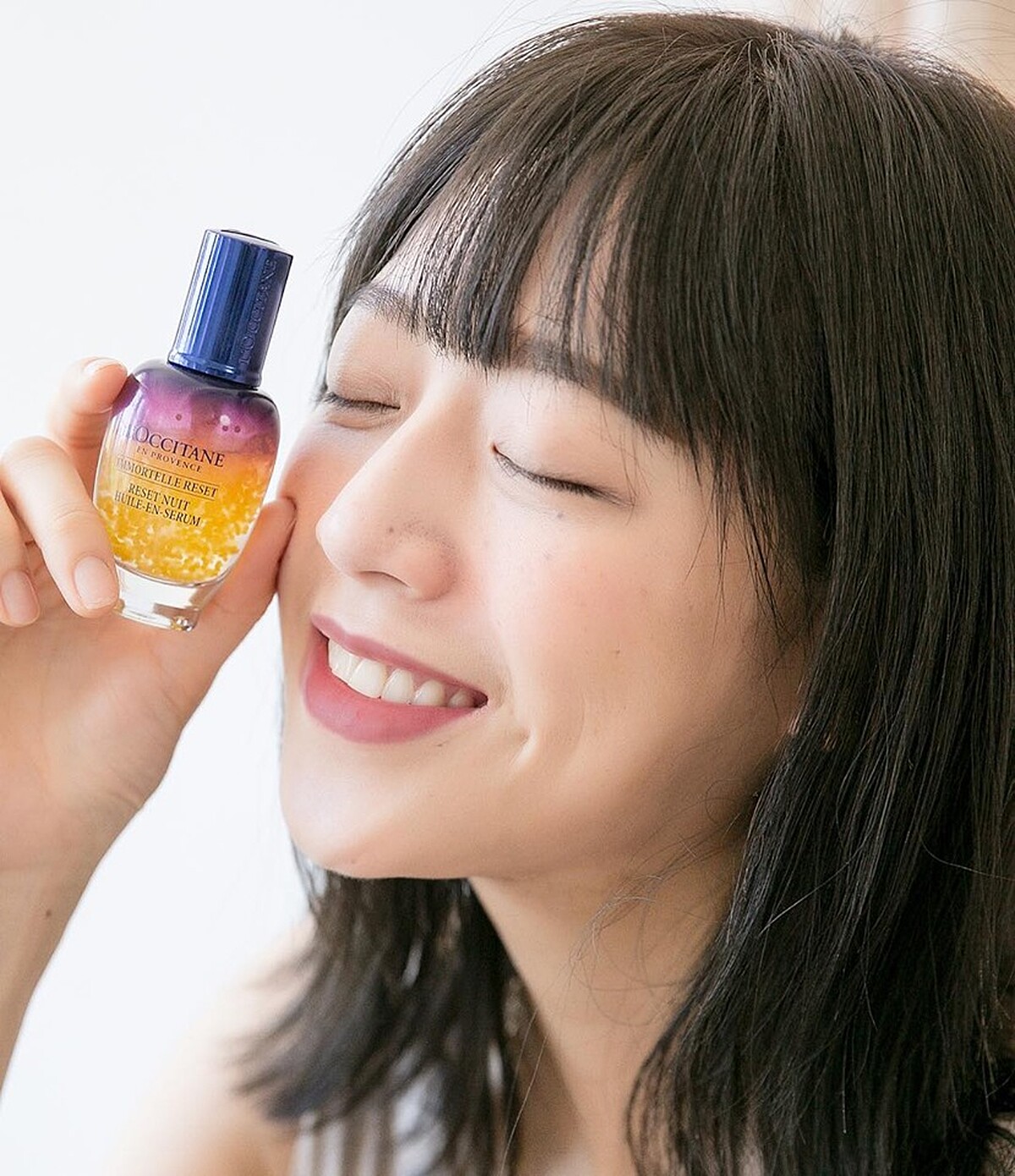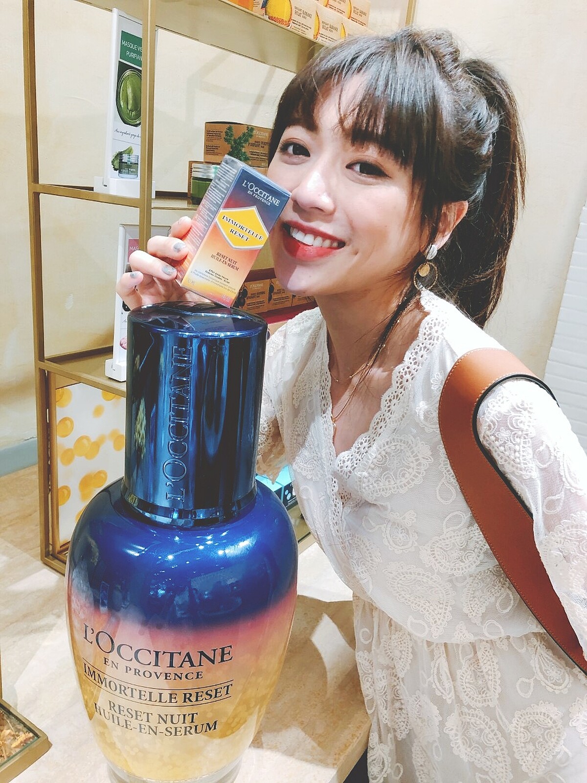 年輕的逸歡則說這次跟著歐舒丹到科西嘉參訪,更加了解它們家產品的製作過程及成分,令她印象深刻,之前就有用過星光瓶,當時就覺得很好用,這次看到歐舒丹如此用心的栽種萃取蠟菊成分,讓她更加喜愛這個品牌了,現在光是看到3300顆光微導晶球在瓶身中游動,都會讓她想起在科西嘉島看到栽種者們親手割下蠟菊給他的感動,覺得工作再辛苦都值得。