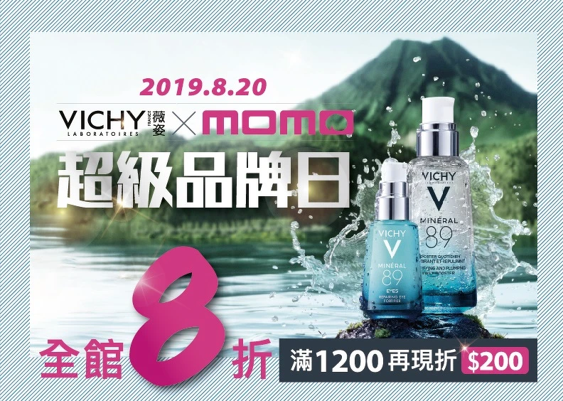 VICHY薇姿M89穩定膚況神器X MOMO全年唯一超級品牌日 採!購!攻!略!>>全館8折+下單就抽4K電視,快看愛妻魔人修杰楷大推的保濕神組合是什麼!(內含美麗佳人專屬折扣碼~)