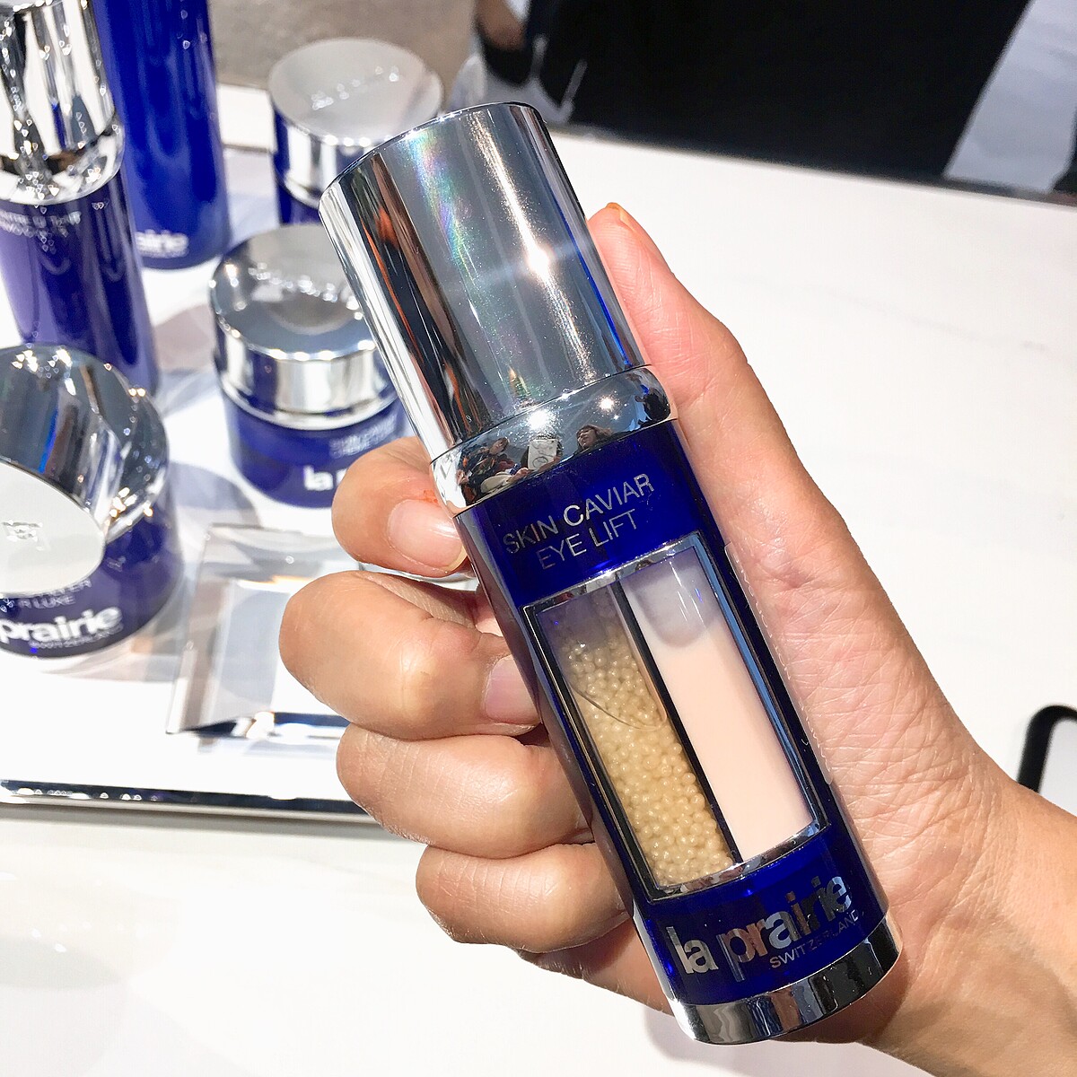 眼部產品一直是La Prairie瑞士科學的重要焦點,透過不斷創新與演進,La Prairie打造出首款全眼周皆可使用的「黃鑽魚子緊俏美眼精華」,連同最常被忽略的眉毛區域皆可保養,透過經典魚子工藝萃取「魚子精萃複方」、並以創新設計:將「黃鑽魚子珍珠」及「魚子亮眼精萃」合而為一,完美重塑全眼周肌膚,淡化眼尾細紋、眼下眼袋及浮腫並緊緻上下眼皮肌膚,喚醒雙眸的美麗神采,撫平歲月駐足痕跡。
