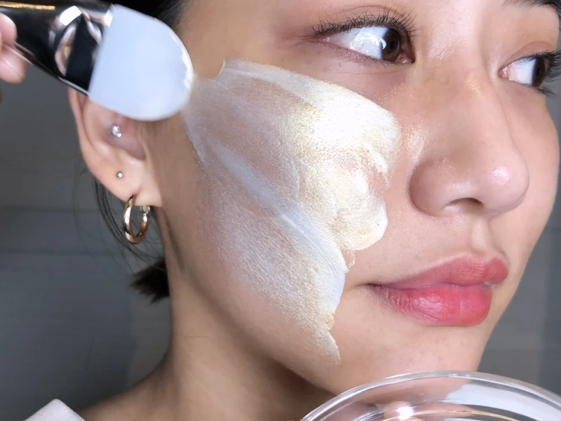 ReVive金緻導入嫩白面膜因為含有來自氟金雲母的礦物成分,藉由光感折射,塗抹瞬間會由珍珠白色幻化為光燦金色,產生絕美視覺效果,讓人在敷面膜時有更多期待與驚喜。