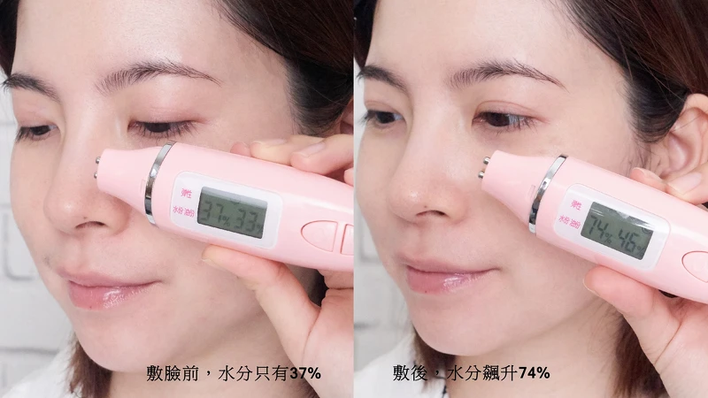 保濕數值實測結果真的超驚人,從37%→74%真的不誇張,而且膚色還白了一階,怎會這麼厲害啦。