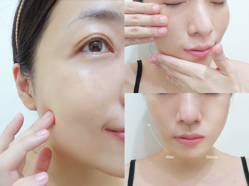 使用「香奈兒 3.5-DA 醇萃緊緻彈力精萃」前,先花幾分鐘按摩臉部,為之後的保養程序做好準備。用雙手指腹由下顎開始,再往顴骨、太陽穴,最後前顎。另一邊重複同樣步驟。肉眼就看得見U臉有感變V臉,從臉部輪廓、下巴線條、嘴角(嘴邊肉)絲毫不鬆弛。按摩完後,肌膚表面不斷的感覺得到不斷被向上拉提的緊實感,簡單步驟就將縮時拉提術發揮到最大威力。