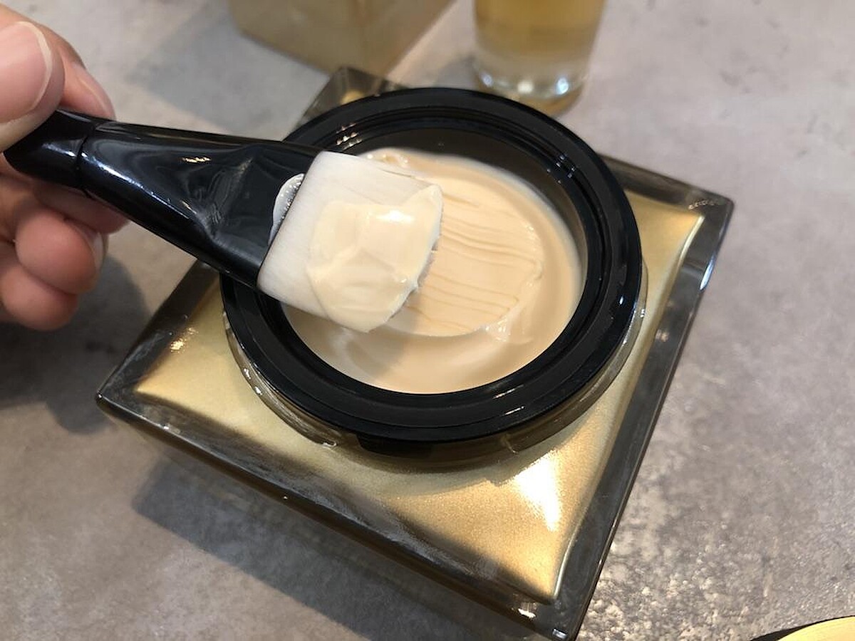肌膚卸完妝呈現素顏,將面膜以面膜刷沾取約10圓硬幣大小,均勻擦拭全臉,並靜待10-15分鐘,以清水洗淨後即可接續其餘保養流程(化妝水、精華液等)。
