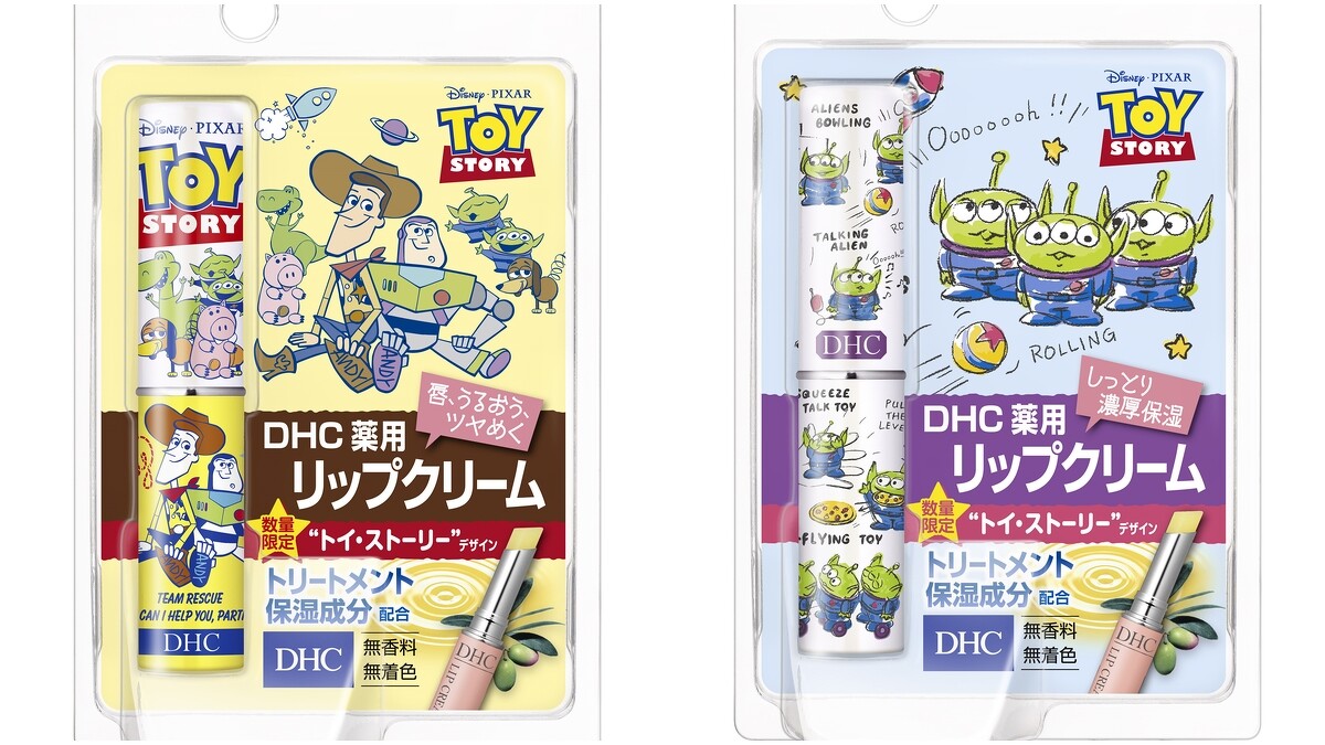 這次DHC特地將自家明星經典商品:「純欖護唇膏」和「洗卸淨膚組」,結合玩具總動員裡的胡迪、巴斯年、三眼怪等人氣角色,以手繪插畫的可愛風格,讓喜愛的DHC和《玩具總動員》的人能一次擁有,成就肌膚最動人的美麗狀態。