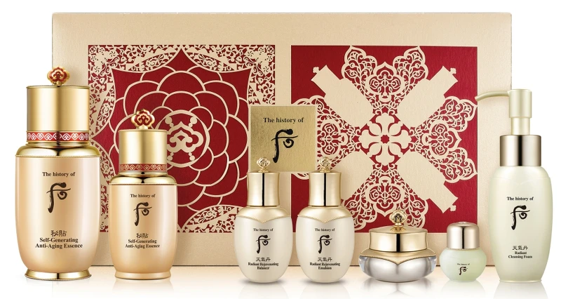 經典商品「重生秘帖」內含四大韓國皇室御用保養配方,改善各世代肌膚老化問題,2019年週慶推出禮盒組,請到藝術家吳耿禎打造台灣限定的「重生秘帖:皇后美學限定禮盒」,剪紙設計看起來非常細緻。