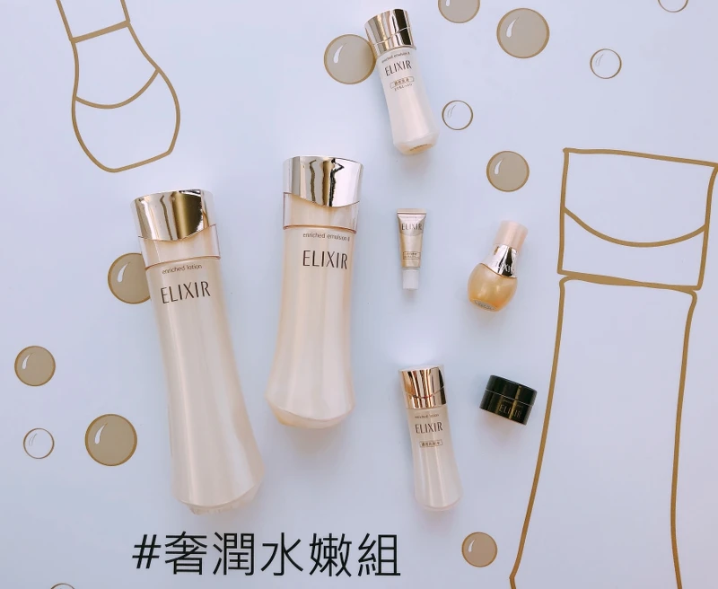怡麗絲爾系列主打「水玉光」美肌,向來著重於膠原蛋白保養,週年慶主打奢潤組合,更擁有高濃度膠原蛋白打造膨潤肌。