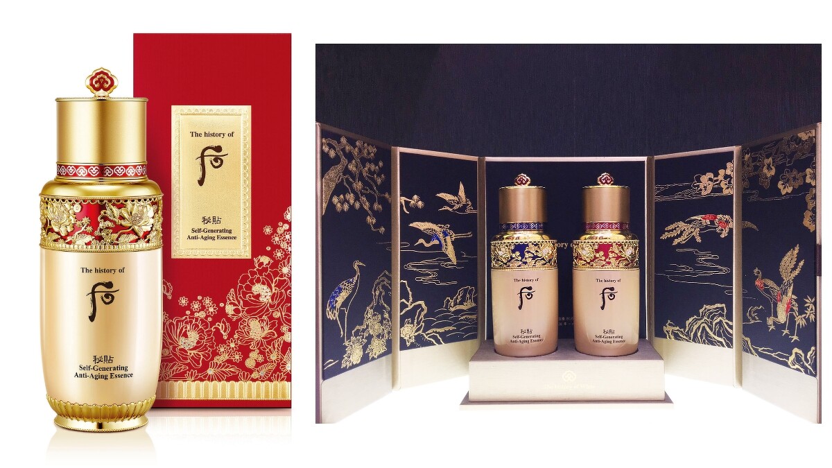 每年都推出不同限定包裝的特別版重生秘帖邁入第十年,「2019重生秘帖·至高典雅限量版」以韓國國寶816號昌德宮大造殿為靈感,禮盒打開如皇室寢殿屏風襯托著華麗的特別版重生秘帖,瓶身以藍色及紅色分別代表著王與后,璀璨瓶身耀眼奪目。
