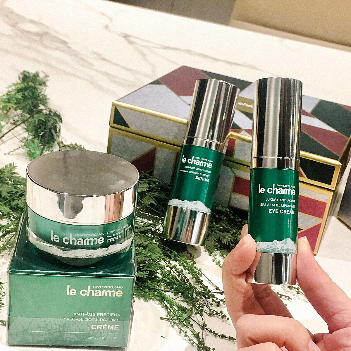le charme是由台灣與瑞士頂級保養科技實驗室共同攜手合作孕育而生的品牌,100%瑞士研發生產製造。le charme在研發上不斷尋求創新,以最尖端科技結合最珍稀的成分,研發出最有效的保養之道!le charme對於產品始終抱持著,必經實驗室人體實證要有效且溫和,不能傷害肌膚 ,亦不造成肌膚負擔,因此我們注重三大原則:1. 只挑選經科學實證有效原料、2. 最嚴謹的歐盟安全穩定測試、3. 講究品質輕量愛護環境設計;期許研發出與時俱進,最優質高效的保養之道!