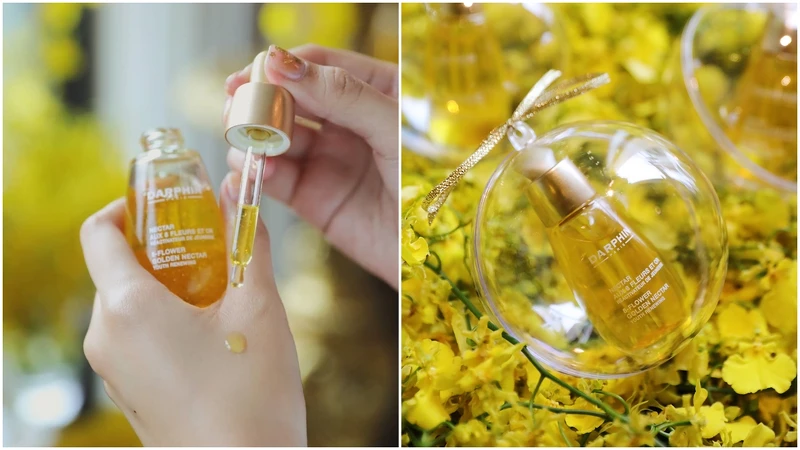 前一天晚若是睡眠不足,隔天也有熬夜的急救星,除了熬夜霜,還可以親膚性最佳的油類精露產品按摩滋潤肌膚,保養圈中一直有「美容油天后」地位的 Darphin推出 「百妍24K黃金極緻芳香精露」新品,將品牌經典百妍精油複方,添入比髮絲還細 300 倍的 0.1 微米金箔,融合能高效滲透的全新「Dry Oil輕質油」質地,是現代人疲勞暗沉的肌膚保養救星。
