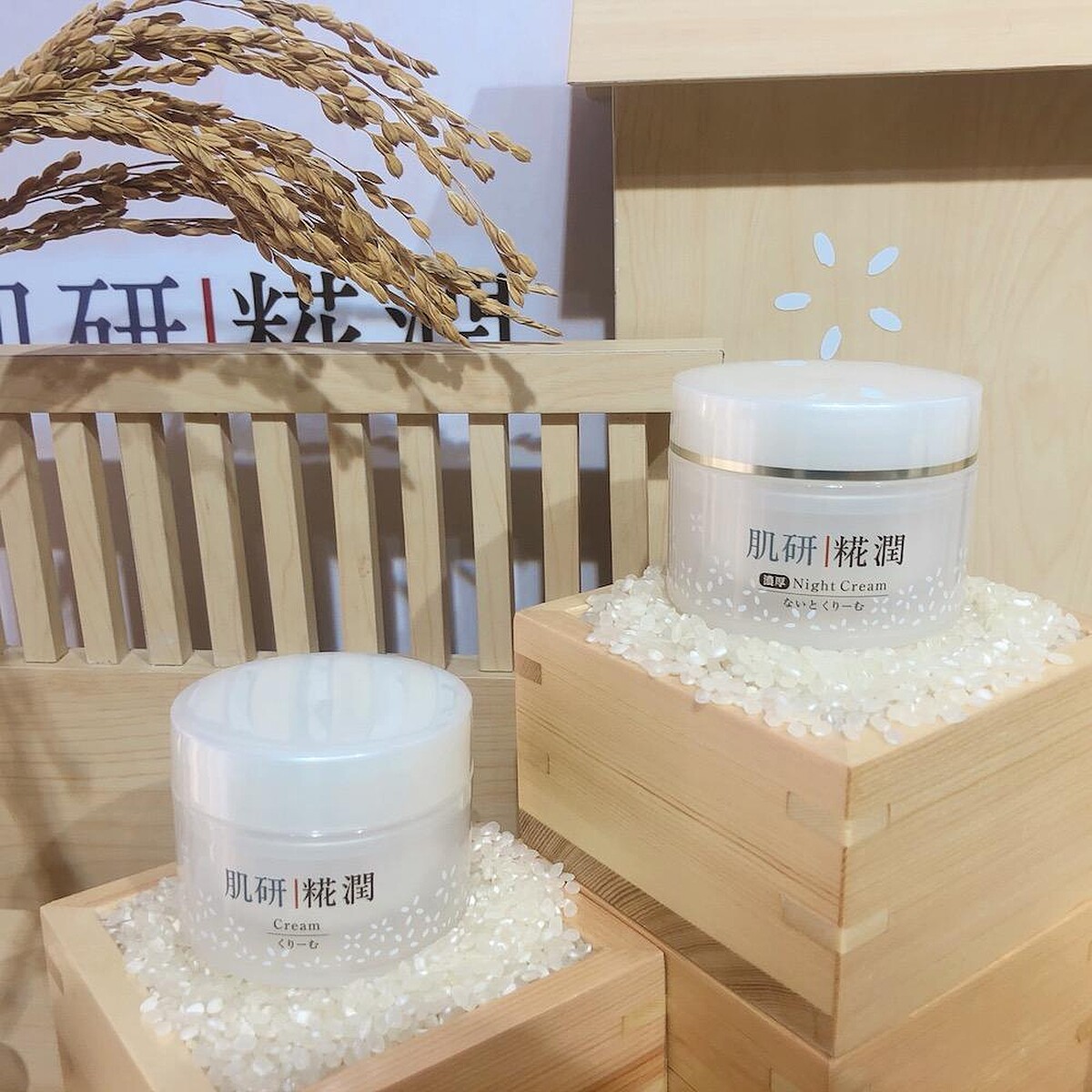 日本一直以來擅長用酵素保養,年老的釀酒師面部滿佈皺紋,唯獨雙手仍細嫩柔滑,肌研於此啟發,打造了全新「肌研糀潤」系列。所謂「糀」就是漢字的「麴」,是日本傳統清酒釀造過程中白米發酵而成,從「糀」中萃取出「白糀酵源精華」,蘊含白米發酵後的美肌成分,幫助調理修護肌膚。共設計出三款產品,包含:一款修護精華和兩款凝霜