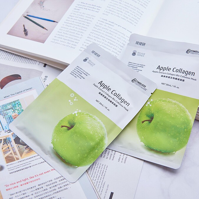 「蘋果修護生物纖維面膜」裡的蘋果肌活植萃可提升肌膚活性,改善衰老而形成的肌膚問題,讓肌膚持續水潤有光澤,再現超彈力美肌。