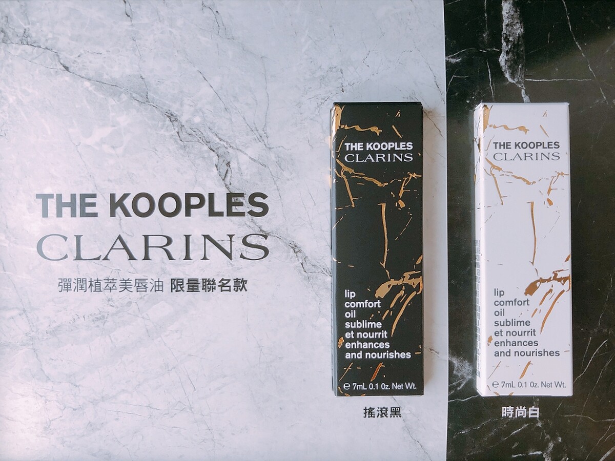 THE KOOPLES的辨識特色就是黑色、白色、大理石紋、克蘭詩則是打造出世界上第一款針對唇保養的美唇油,因此兩大品牌的首度聯名合作就將時尚與植萃保養結合,誕生了「搖滾黑」與「時尚白」兩款令人驚艷的限量版彈潤植萃美唇油。