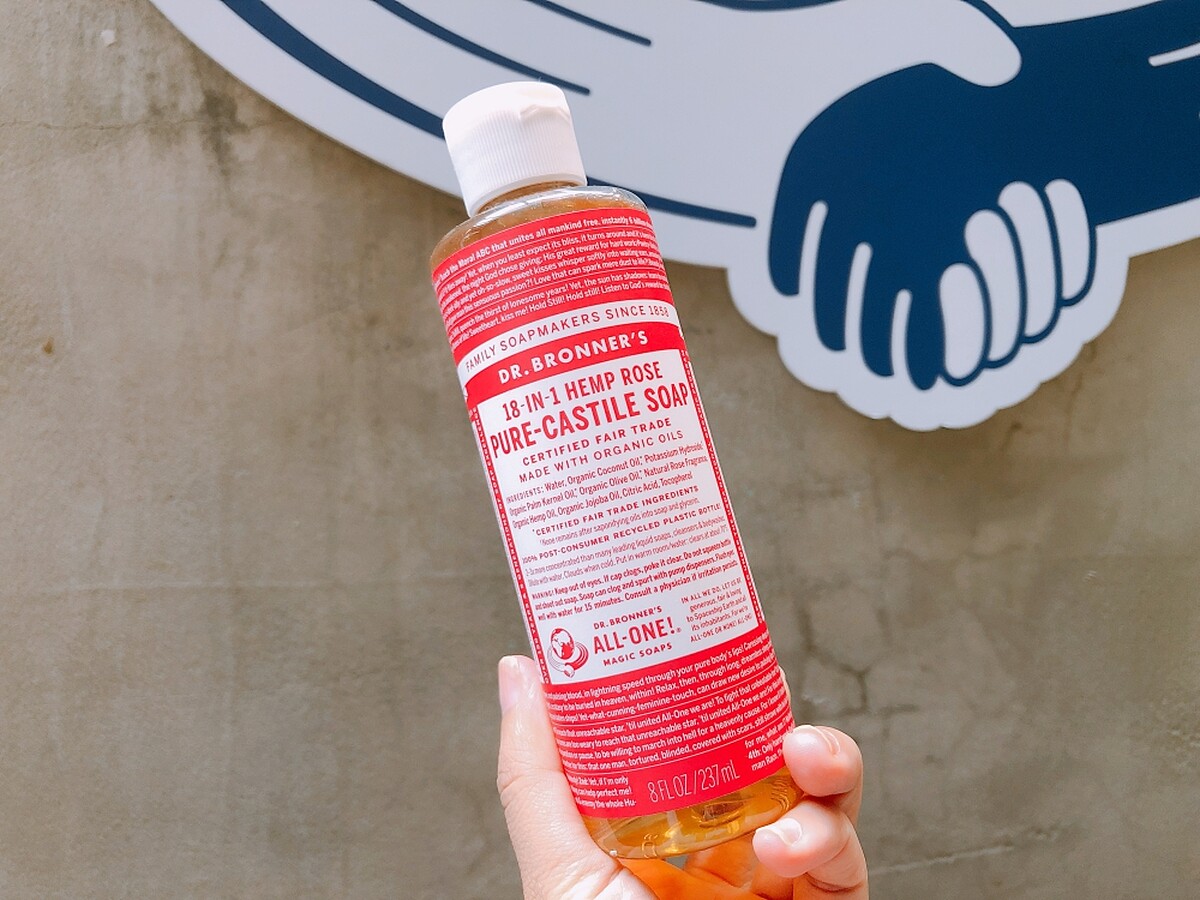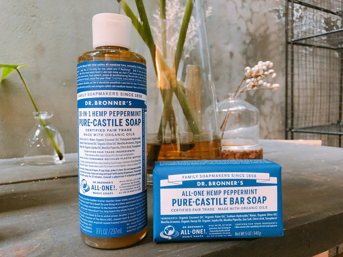 「18-IN-1潔膚露(潔膚皂)」顧名思義就擁有18種用途,例如:潔顏、卸妝、沐浴、洗髮、刷牙、衣物洗滌、清潔刷具、植物驅蟲、家事清潔、寵物清潔等等,一瓶就能取代家裡瓶瓶罐罐,輕鬆實行簡單生活。