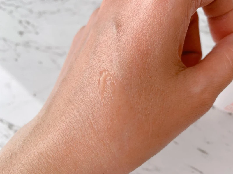 不過輕點少量放在手背上推開後,發現是完全不同的質感,屬於有溫感的油膠質地,瓶身上很明確的說明:「使用量請少於您一般乳霜的使用量」,延展性很高,真的只要一點點就很有滋潤感。