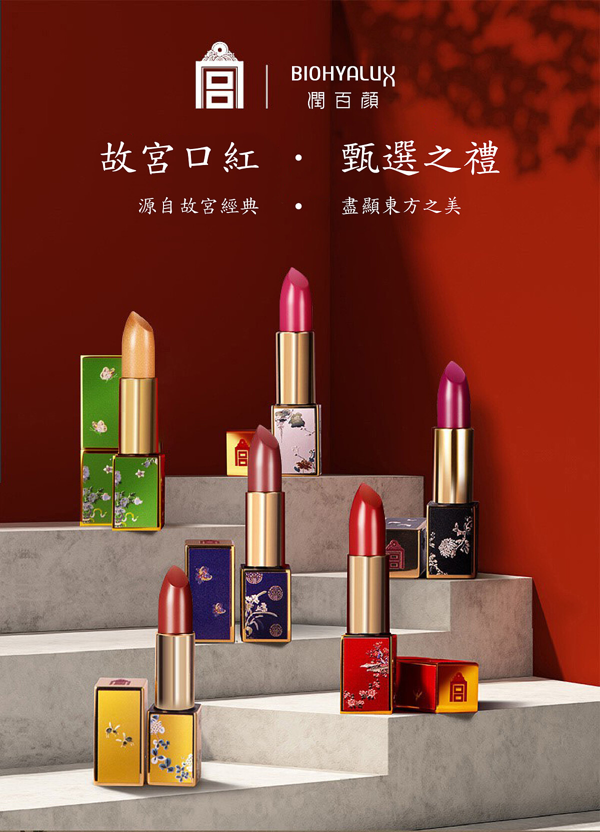 水潤次拋原液是潤百顏的經典產品,具有呵護肌底的作用,增加肌膚水潤感和通透感。除了玻尿酸原液,還有一樣讓M編驚豔的好物,潤百顏x北京故宮聯名的玻尿酸口紅「雕花磁扣口紅」,外包裝精緻絕美的立體浮雕,管體包裝採用了極盡科技手段的3D多層列印技術,將中國古典美學充分展示與傳承。玻尿酸成分的柔滑質地超滋潤顯色完全不顯唇紋,每次塗口紅都會龜裂的粉絲有福了,共有六色均來自故宮國寶文物色調,就連包裝也在后妃服飾與繡品上汲取靈感,真的是編近期內看過從包裝到唇色都美到令人揪心的口紅。不過可惜的是,目前只有「潤百顏蜂巢玻尿酸水潤次拋原液」在台灣上市,如果想要收集口紅的粉絲們,除了敲碗等待外,聽廠商說購買多件玻尿酸次拋原液,有機會以神秘禮物的形式收到喔!!