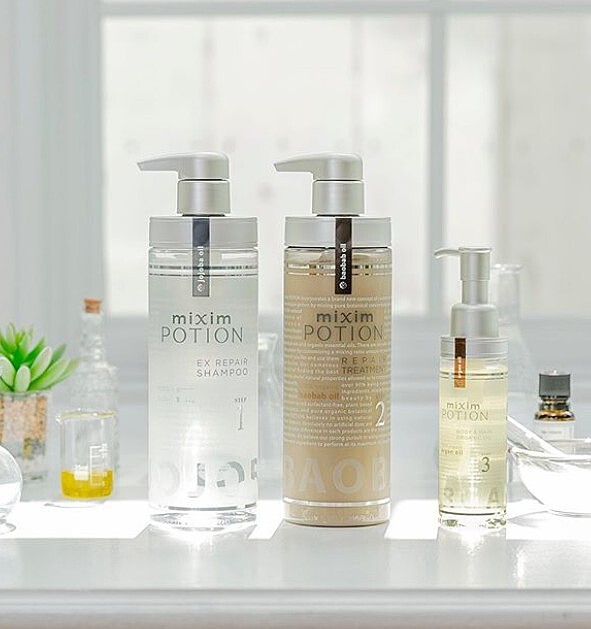 如果妳的頭髮真的非常的乾燥受損,需要在短時間快速修護,那麼這款「mixim POTION」由皮膚科醫生、美容師和藥劑師一起研發的髮品就很適合妳,每一罐都是透明包裝,讓妳看得見天然原液萃取的色澤,並且精選了各種精油,例如佛手柑、玫瑰天竺葵精油等,在修護髮絲的過程中能拿到身心的放鬆。對於受損髮嚴重的人M編建議先透過精油按摩紓緩頭皮,再以精油修護洗髮精1.0,先確實做到洗髮的第一步深層清潔,特別添加了荷荷巴油避免髮絲糾結,最後用精油修護護髮乳2.0的,富含猴麵包樹油,有維生素加上滿滿角蛋白修復成分,提升髮絲的修護力。