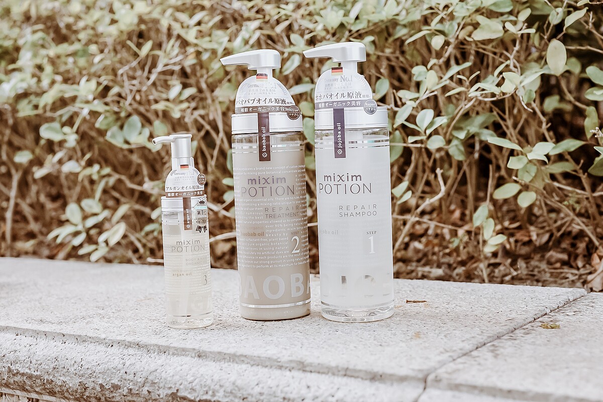 在日本被歸類在殿堂級的養護髮品mixim POTION,無論是洗髮精、護髮乳或精華容油,最大特色就在含有高達90%天然植萃修護成分,洗髮精以荷荷巴油為基礎,貼近毛髮結構中的油脂成分,能在清潔同時深度滲透髮芯滋養秀髮,達到保濕潤澤效果,角蛋白修復成分更能增強髮絲的強韌度與光澤度;護髮乳、精華油則以摩洛哥堅果油為主,強效鎖水還能預防紫外線傷害,M編大推精華油~除了柔順髮尾,也能在洗髮前當頭皮按摩油使用,滋養頭皮從根本解決受損髮問題。
