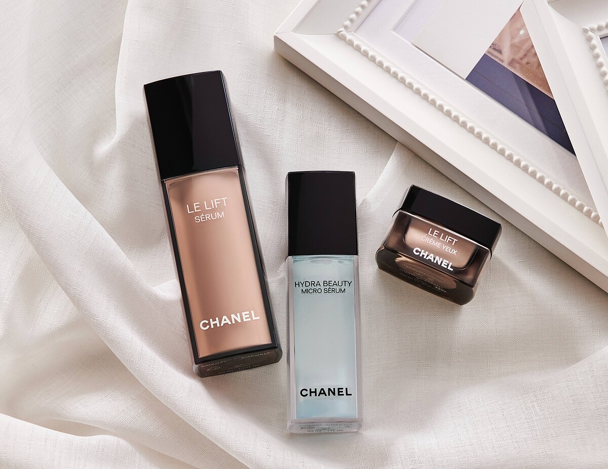 而「緊緻有感三件組」怎麼用呢?來M編告訴大家:先擦充滿藍色泡泡的「香奈兒山茶花微導入精華」保濕打底,讓肌膚先回到健康飽水狀態,把肌膚「胃口養好了」,接著再用淡粉色縮時拉提精華「香奈兒3.5-DA醇萃緊緻彈力精萃」,使肌膚更快更有效率地吸收絕佳緊緻能量。最後,一定要為細緻眼周肌輕塗上小分子、超細緻好吸收的「香奈兒3.5-DA醇萃緊緻亮眼霜」(可搭配食指在眼下由內向外輕按,改善黑眼圈與浮腫效果神好)。從現在開始用到2020春天,讓肌膚在不知不覺中向上、再向上,緊緻明亮、更緊緻明亮,這種每天看自己變美的絕妙感動,一定要擁有。